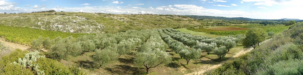 Lucques et Picholine, en production, sont issues de vieux oliviers rescapés du terrible gel de l’hiver 1956.